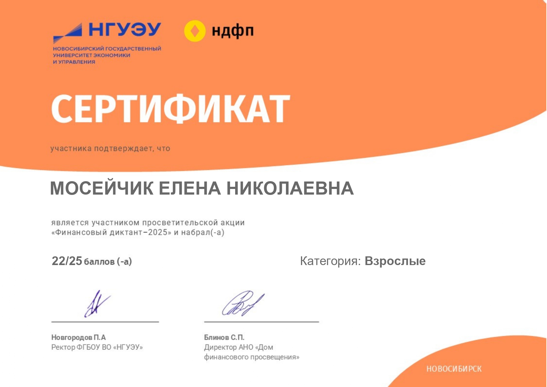 Сертификат участника просветительской акции "Финансовый диктант - 2025". 22.09.2025